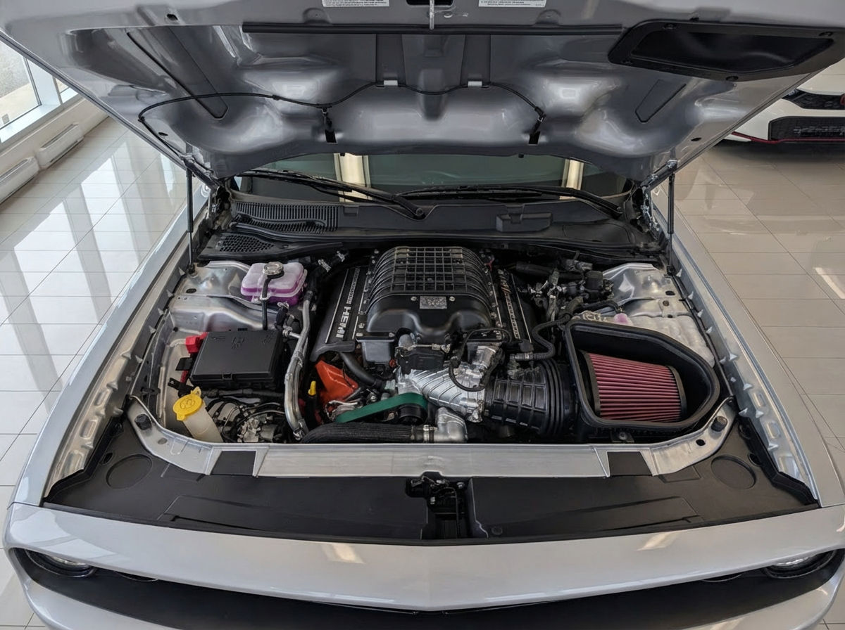 Parmi sa pléthore d’équipements, ce modèle a reçu les groupes d’options 27Q (performances et luxe haut de gamme) et SRT Démon prémium dont le ciel de toit en suède, les sièges ventilés, la tableau de bord avec surpiqures, les rétroviseurs électriques chauffants couleur carrosserie, sièges à mémoire, radio Uconnect avec pages de performance.