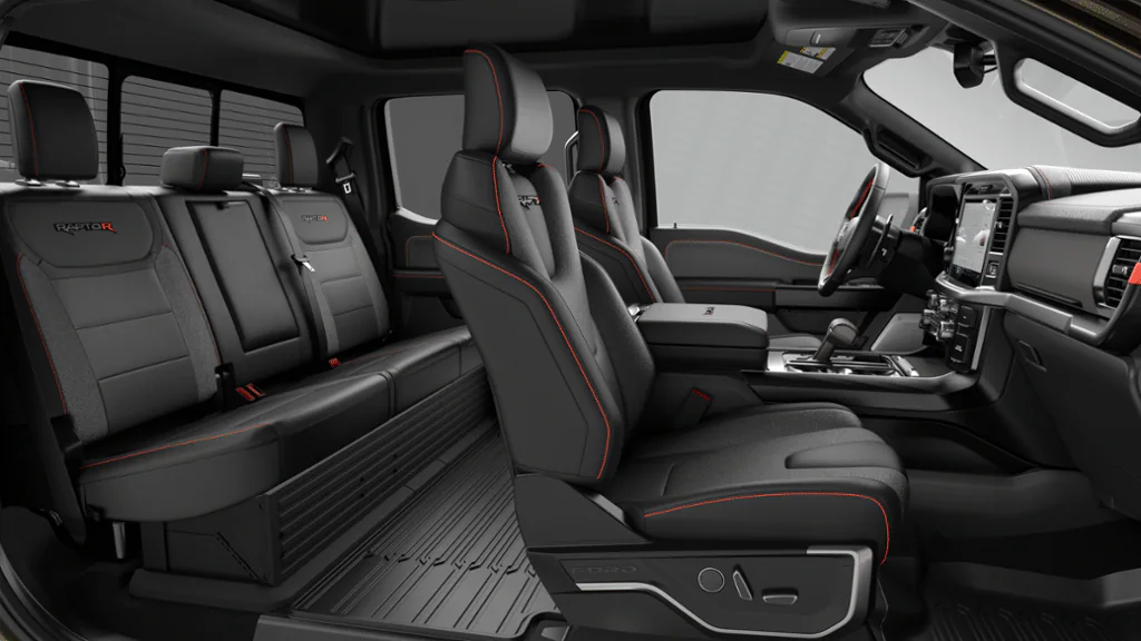 C'est sans compter un niveau de finitions incroyables auxquelles s'ajoutent la vision tête haute, les sièges Récaro (cuir & Alcantara), les amortisseurs Fox-Racing à double valve, le parechoc avant modulaire sans oublier les thèmes Raptor R ainsi que l'intérieur carbone.
